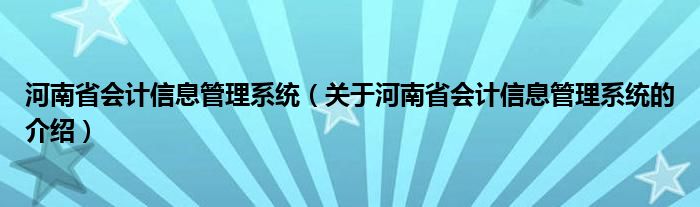 大家好,小新来为大家解答以上的问题。河南省会计信息管理系统,关于河南省会计信息管理系统的介绍很多人还不知道,现在让我们一起来看看吧!