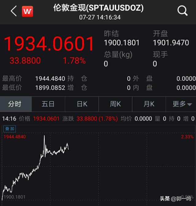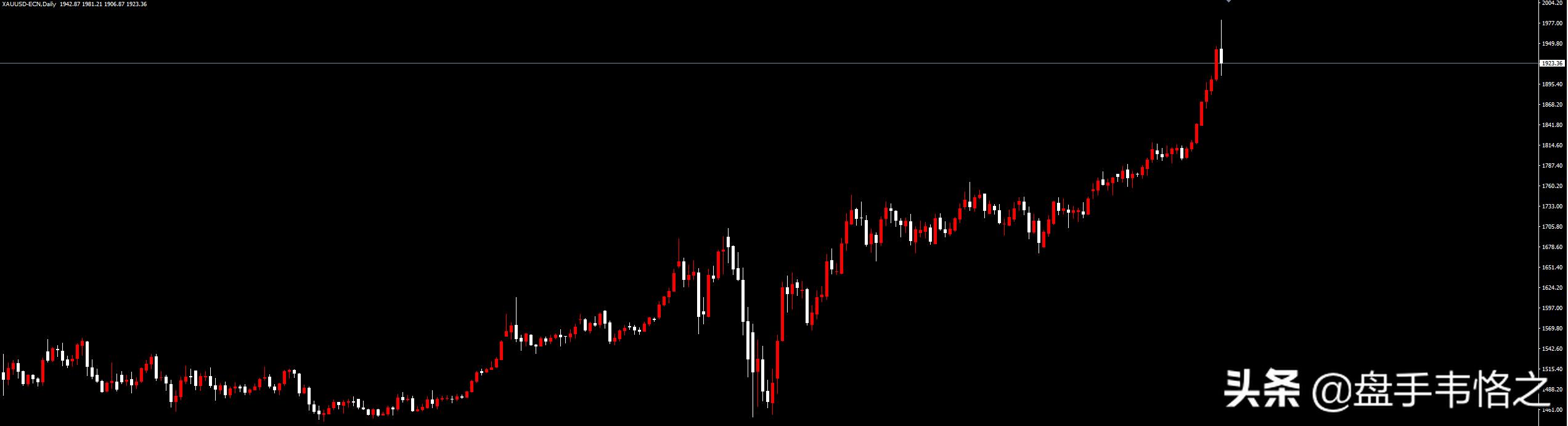 而作为投资人的我们又如何抉择呢?既然都已经发车了,那自然就要跟着老司机上车了。都说在一波风口上猪都能飞起来,在黄金这波狂涨的风口中,我早已经上车了,目前还没有考虑下车。