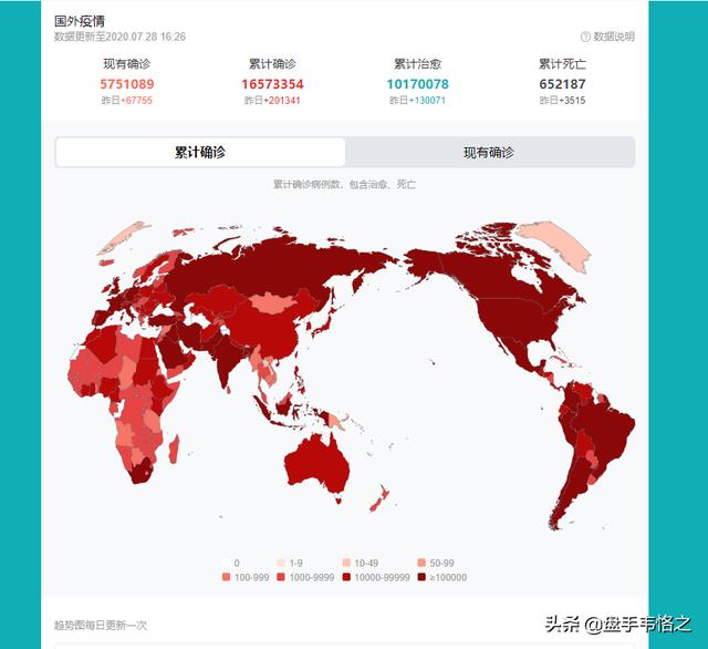 时间截止2020年7月28日16:26分,国外累积确诊人数超过1600万人,当下确诊人数已经超过了570万人,比昨日增加6.7万人。这些国家没有中国强而有力的工业以及组织力,无力组织疫情的蔓延,只能采取“群体免疫”政策。